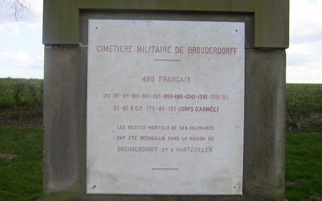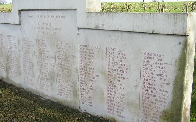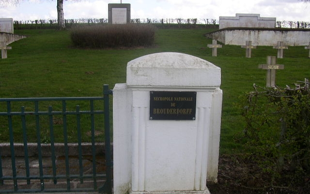 Le cimetière militaire de Brouderdorff se situe entre la rue du Stade et la rue de la Forêt. Pour y accéder, il faut se rendre au niveau du n° 33 de la rue de la Forêt. Le chemin d’accès se situe entre la maison n° 33 et n° 35.