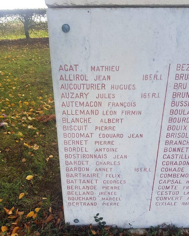 | 5 | PEILLARSE | Antoine | Soldat | 16e R.I | |