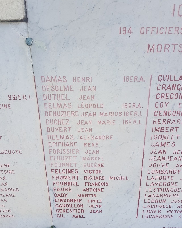| 45 | TIXIER | Jean Marie | Soldat | 16e R.I. | |