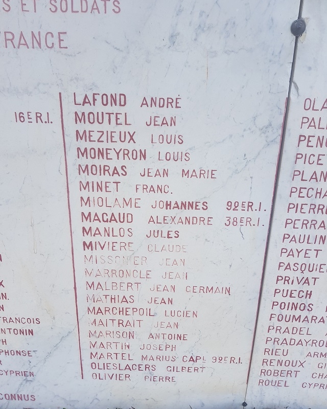 | 37 | SOULEYRAS | Francisques | Soldat | 16e R.I. | |