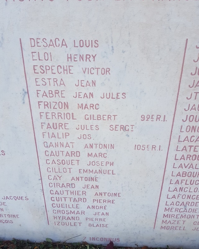 | 36 | FERRIOL | Gilbert | Soldat | 92e R.I | |