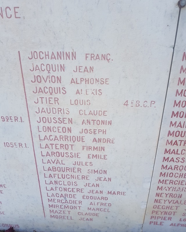 | 18 | CALMETTES | Julien Baptiste | Soldat | 139e R.I | |